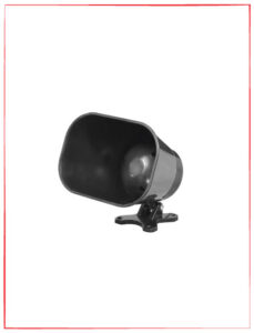 بلندگو یا آژیر دزدگیر، وظیفه دارد صدای هشدار را پخش کند. این بلندگوها با صدای بلند و هشدار دهندهای که دارند به اطرافیان و نیروهای امنیتی وقوع حادثه را اطلاع میدهند. درواقع این وسیله به عنوان یک عامل بازدارنده سارق نیز عمل میکند.
